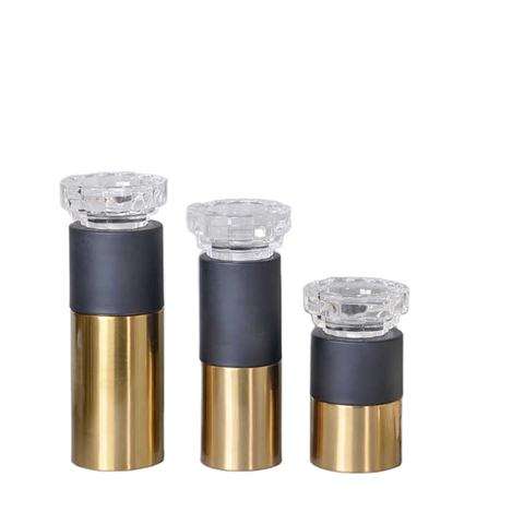 Simply Elegant Golden Metal and Black Marble Candle Stand Living Home Table Top Lighting Decorative Candle Holder Set of Three