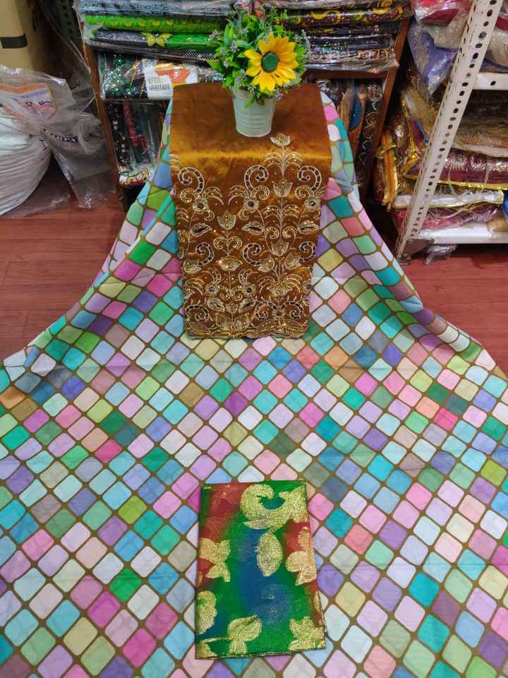 Simply Stunning Design for Dirac Gold Base Dot & Slub Pattern Girls Wedding Dress Fabric for Regular Wear