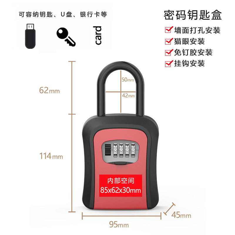 Simply Wall-mounted Key Lock Box 811 Mechanical Rectangle Minimalist Storage Bin with Peephole Design