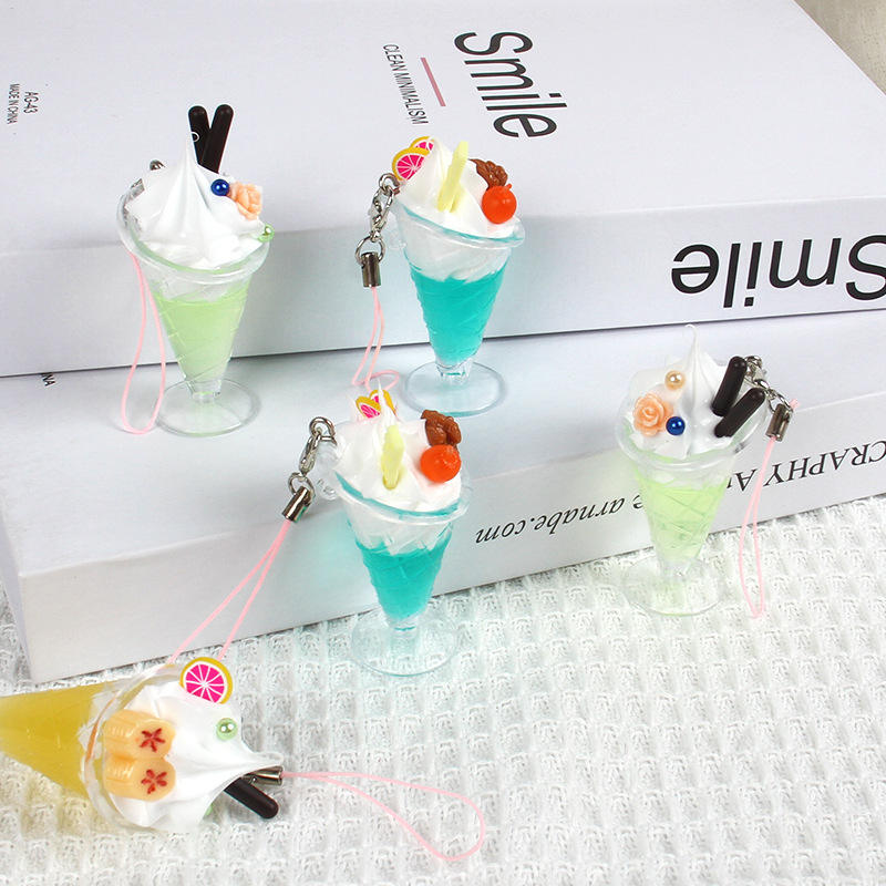Simulated Food Toy Ice Cream Drinks Keychain Funny 3D Plastic Keyring PVC Mini Food Dessert Car Key Chains