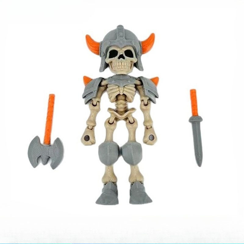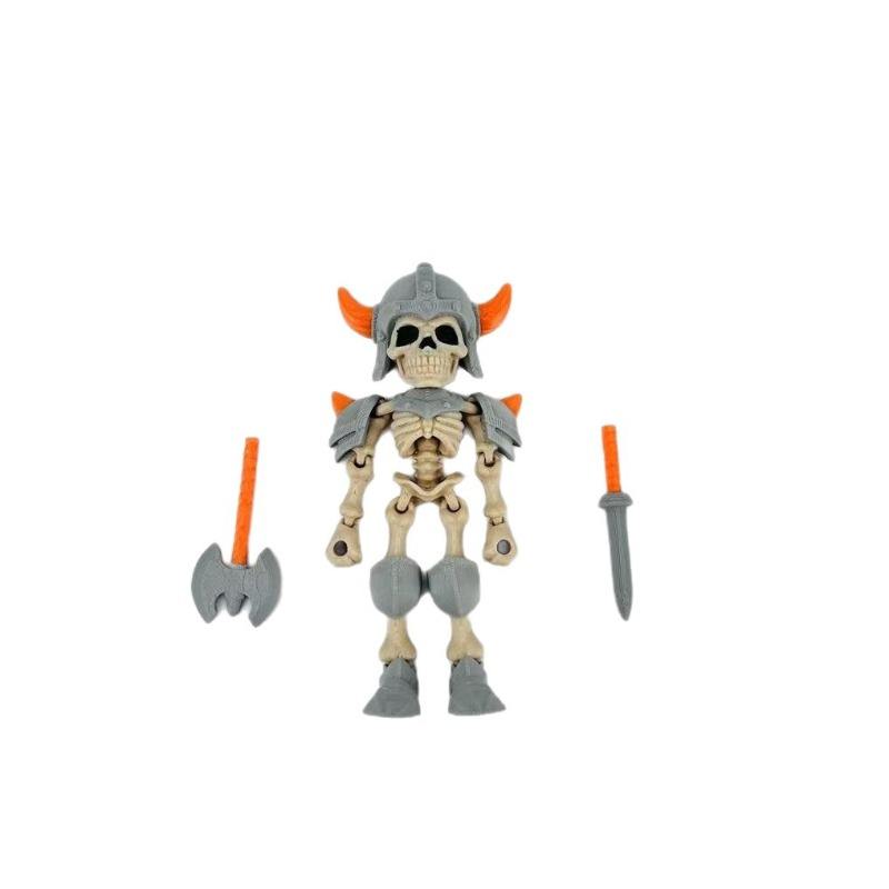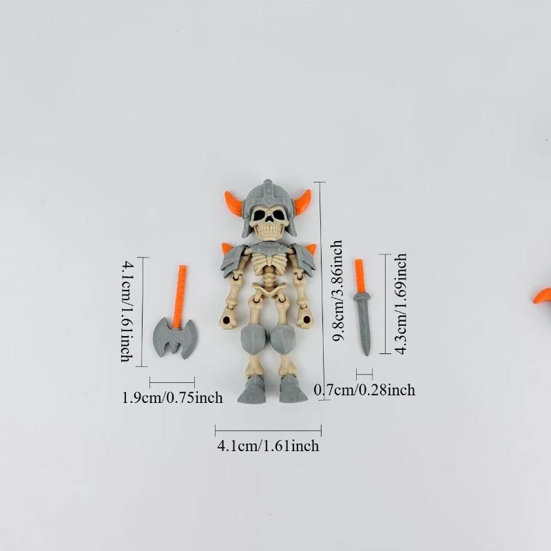 Skeleton Warrior Action Figure With Axe And Sword Plastic Toy For Kids Halloween Decorative Accent Knick Knack
