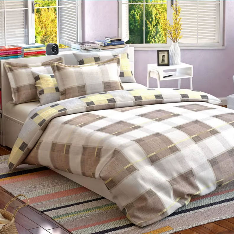 Sinada Home Modern 100% Cotton 62 Thread Double Duvet Cover Set With Cooling Feature 12-26668 Sheet Pillowcase & Duvet Cover