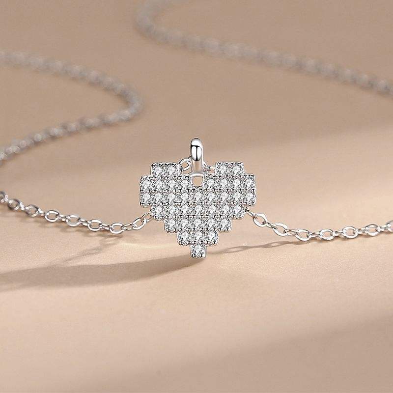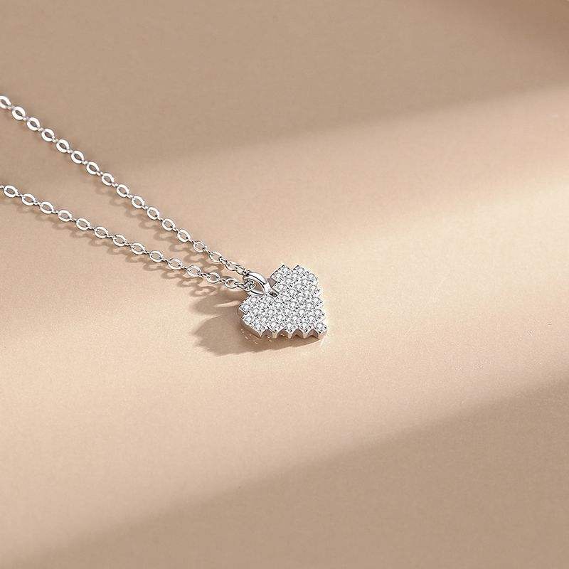 Sincere Love S925 Sterling Silver Round Cut Zirconia Heart Pendant Necklace - A Romantic Gift for Women