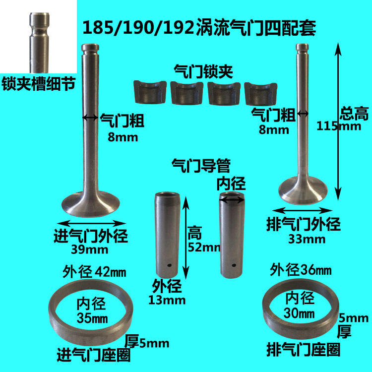 Single-Cylinder Water-Cooled Diesel Engine Intake & Exhaust Valves & Valve Tappets Set R185/190/192 Valve Guide Lock Clamp