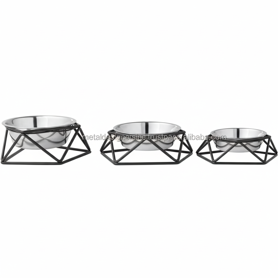Single Diamond Shape Metal Elevated Stainless Steel Bowls Stand for Cats and Dogs Pets Feeding Use