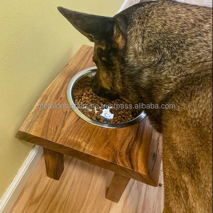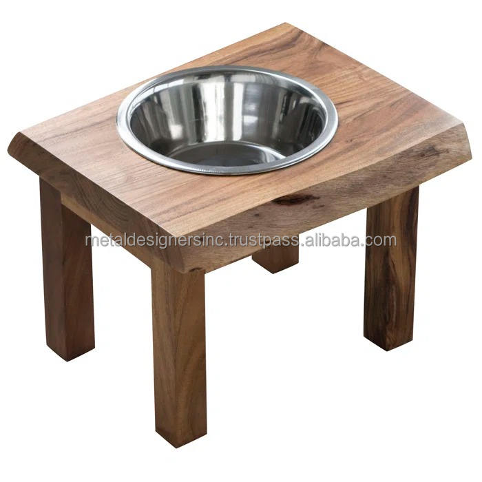 Single Diner Elevated Wood/Steel & Stainless Steel Bowls Station 2L Automatic Stylish Pet Feeder Raised Dog Cat Food Water Bowls