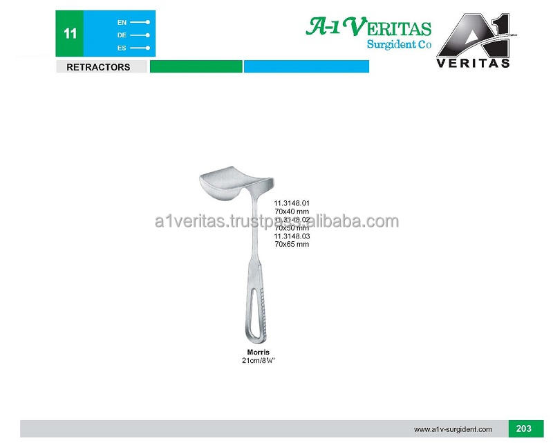 Single Ended Manual Morris-Retractor Surgical Instrument CE Approved Class I Reusable A-1 VERITAS Sialkot Wholesale