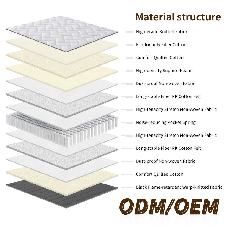 Single Full Size Eco-Friendly Glue-Free Quiet Pocket Spring Mattress Hospital 350g/m Knitted Fabric Soft and Comfortable