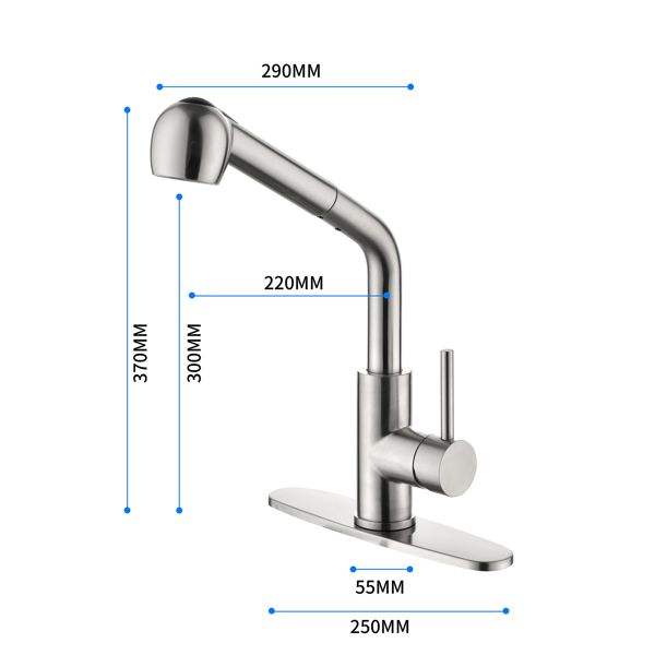 Single Handle Pull-Out Sprayer Kitchen Faucet in Stainless Steel