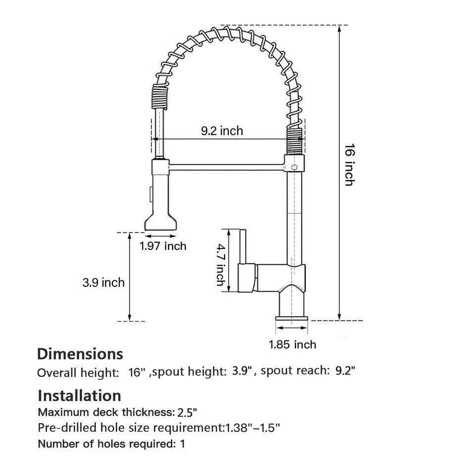 Single-Hole Modern Stainless Steel Kitchen Faucet Pull Down Sprayer with Pull Out Feature Commercial Style Kitchen Sink Faucet