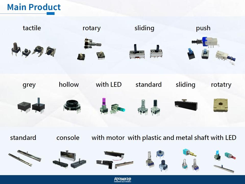 Forward Single Linear RF15H Rotary Taper Potentiometer Encoder Detent Switch Carbon Film Stereo Slide 5.1-500K 20% for Small