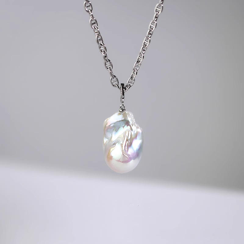Single Natural Baroque Shaped Pearl Pendant Necklace for Women Light Luxury Pig Nose Sweater Chain for Autumn Winter Fashion