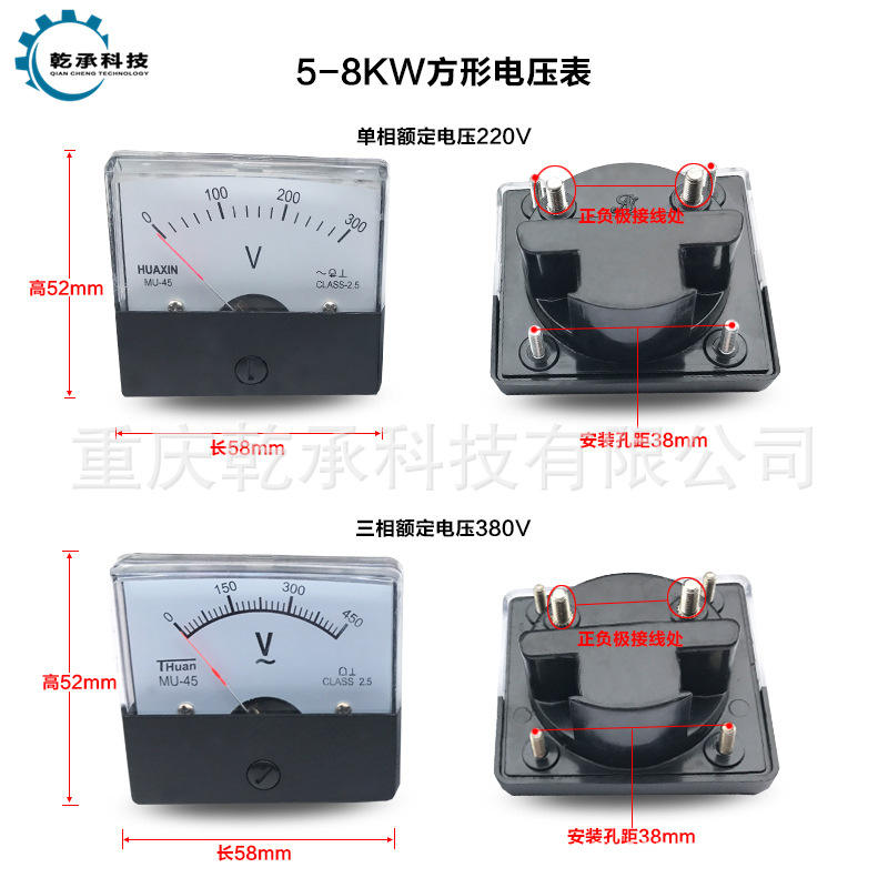 Single-Phase and Three-Phase Gasoline Generator Parts 2KW 2.8KW 5KW 6.5KW 8KW Square Round Voltage Meters
