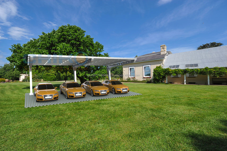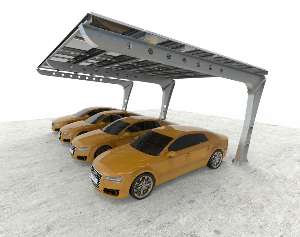 Single-Pole L-Shaped Carport Solar Bracket With Heat Treated Wood Steel Ground Mounting System Garage Designed Metal Wood Frame