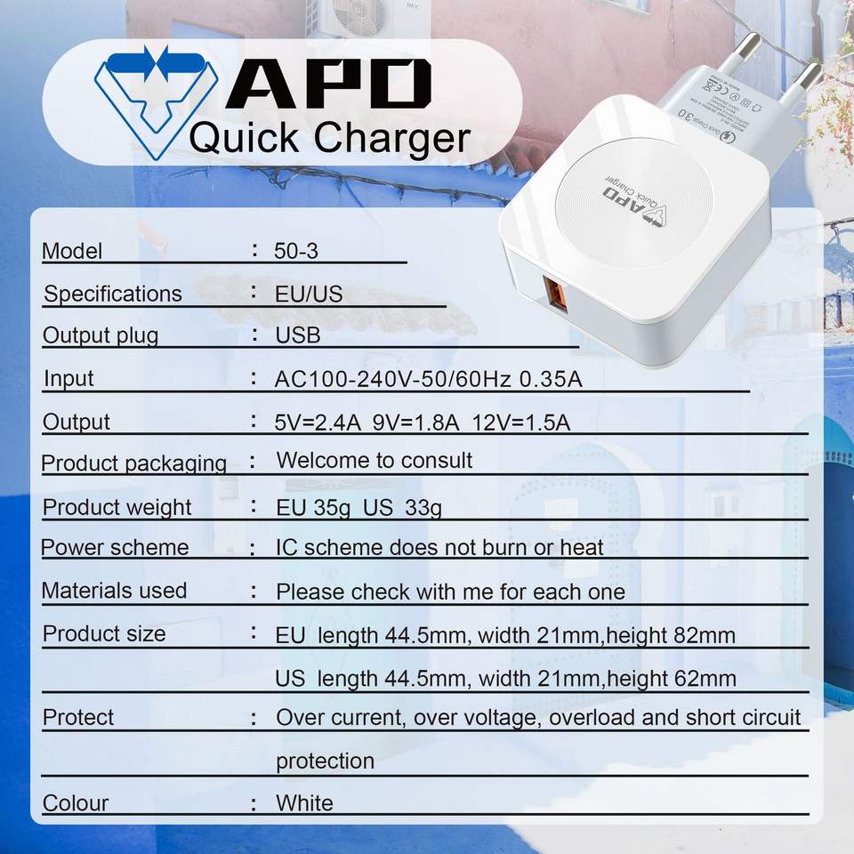 Single Port USB QC3.0 Fast Charger Mobile Phone Charging Head EU US Plug ADAPTS High Quality Fast Charger for iPhone