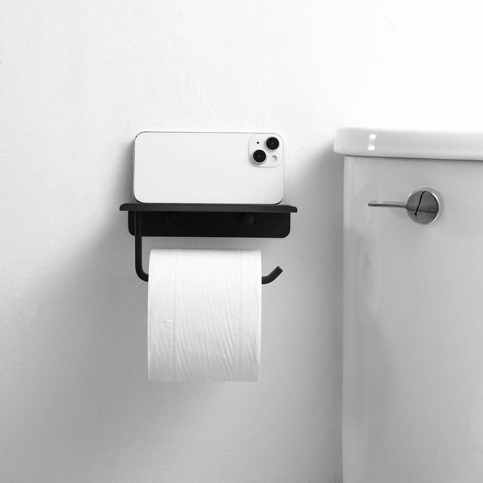 Single Post Toilet Paper Holder with Wall-Mounted Shelf Stainless Steel Brushed Nickel Tissue Dispenser Bath Essential Accessory