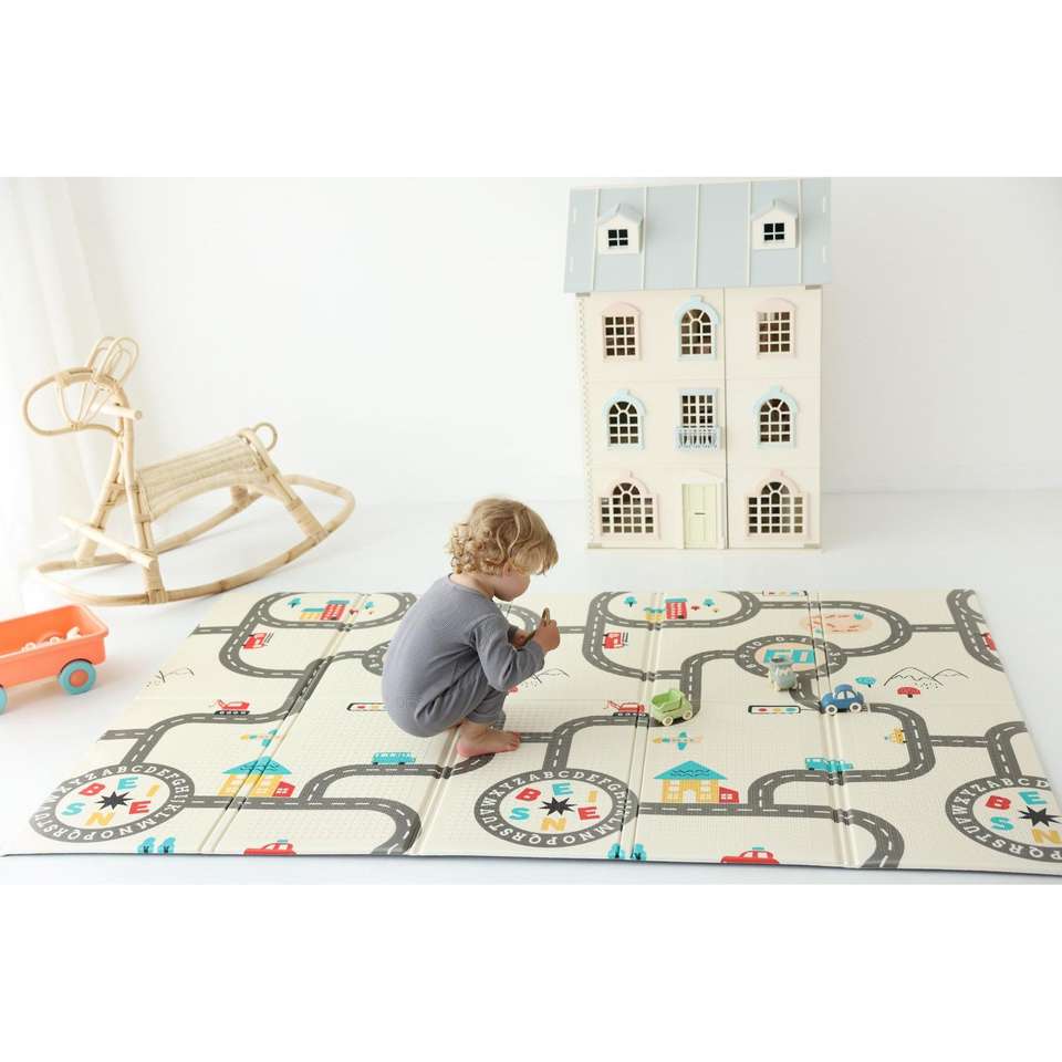 Single-Sided 160x140x0,8 cm XPE Baby Play Mat-Rollable Waterproof Non-Toxic Foam Car Race for Younger Kids