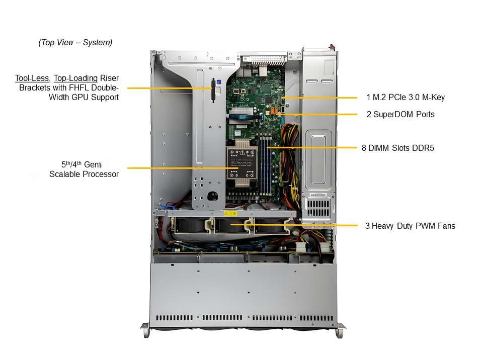 Single Socket Server SYS-521E-WR 2U Rack 2Tb Ddr5 Ecc Ram Gpu Network Server With Dual 1Gbe Lan Ports Intensive Tasks