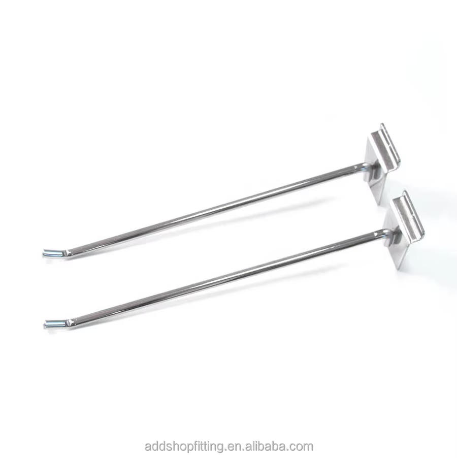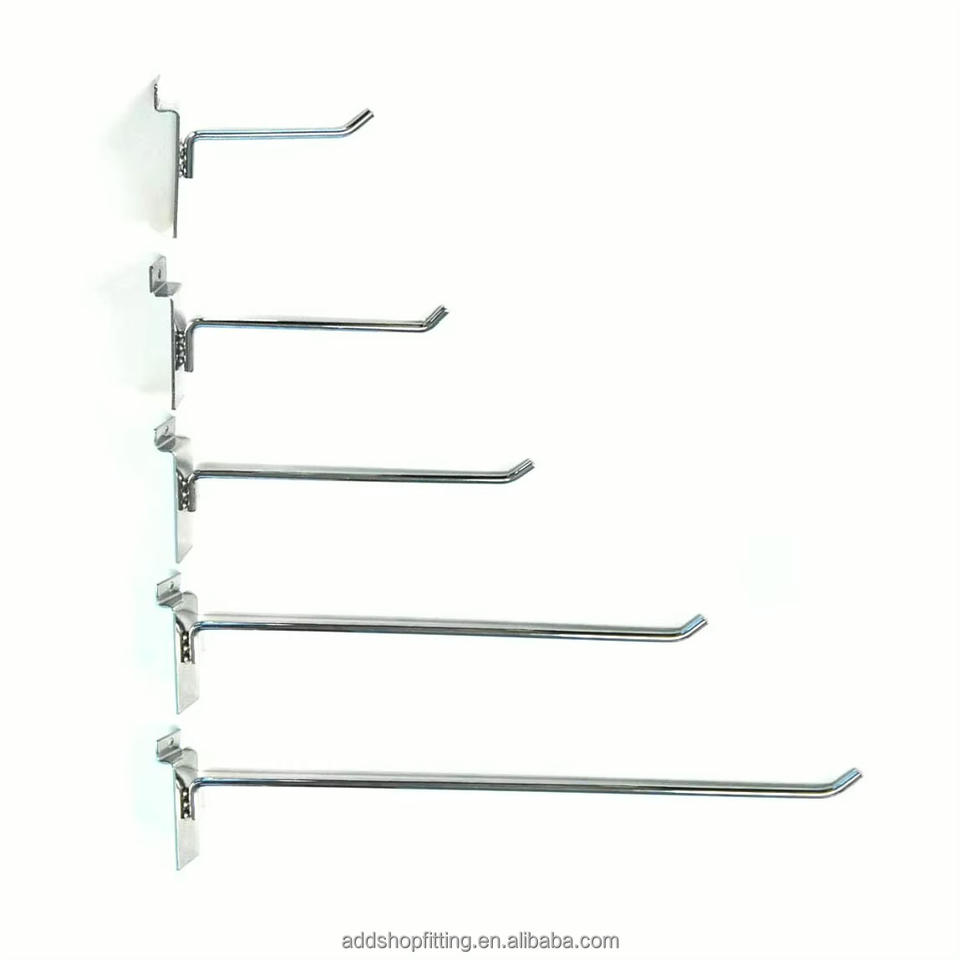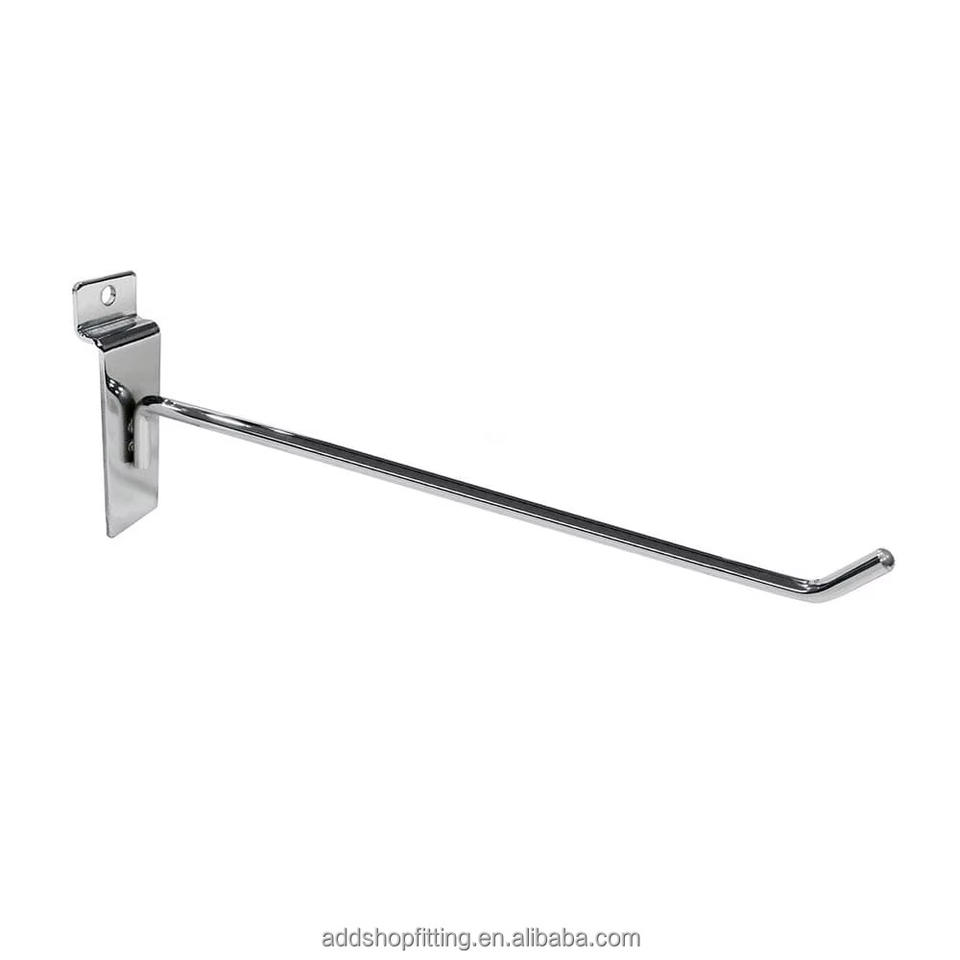 Single Steel Chrome Plated Euro Slat Wall Hook with 9.9 lb Capacity for Retail Store Display and Window Displays