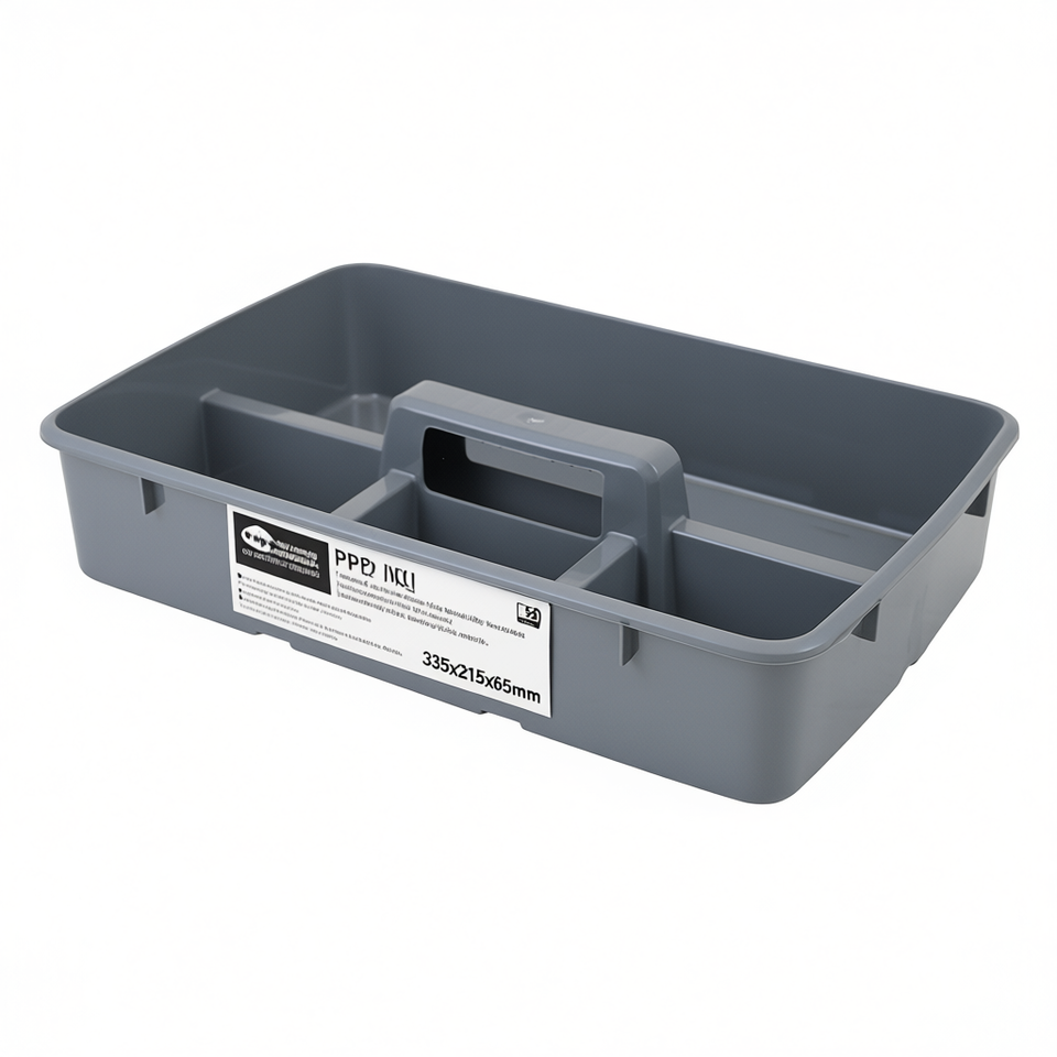 Single Tier Portable Storage Box Tray 335x215x65mm Grey PP Material Organizing Container for Kitchen & Office Use