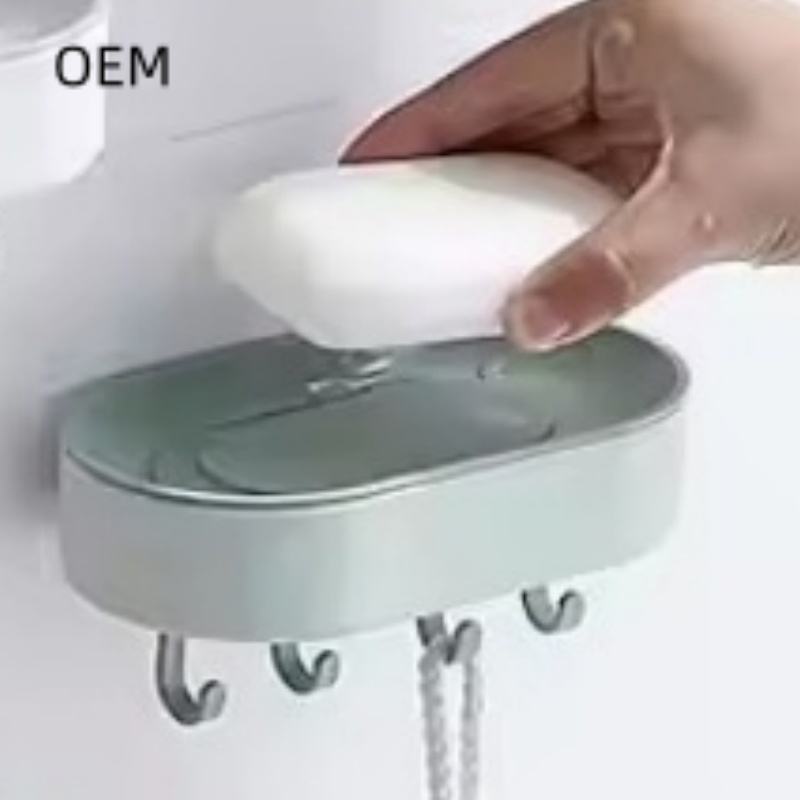 Single Tier Wall-Mounted Toilet Hair Bathroom Hook Multifunctional Plastic Hanging Soap Box for Home Office Storage Boxes Bins