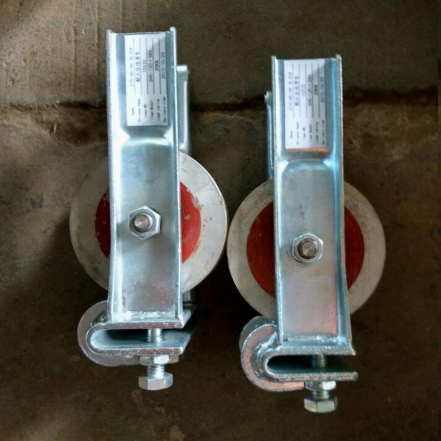 Single-Use Aluminum and Steel Three-Wheel Pulley with Nylon Wheel Upside-Down Line-Laying Feature