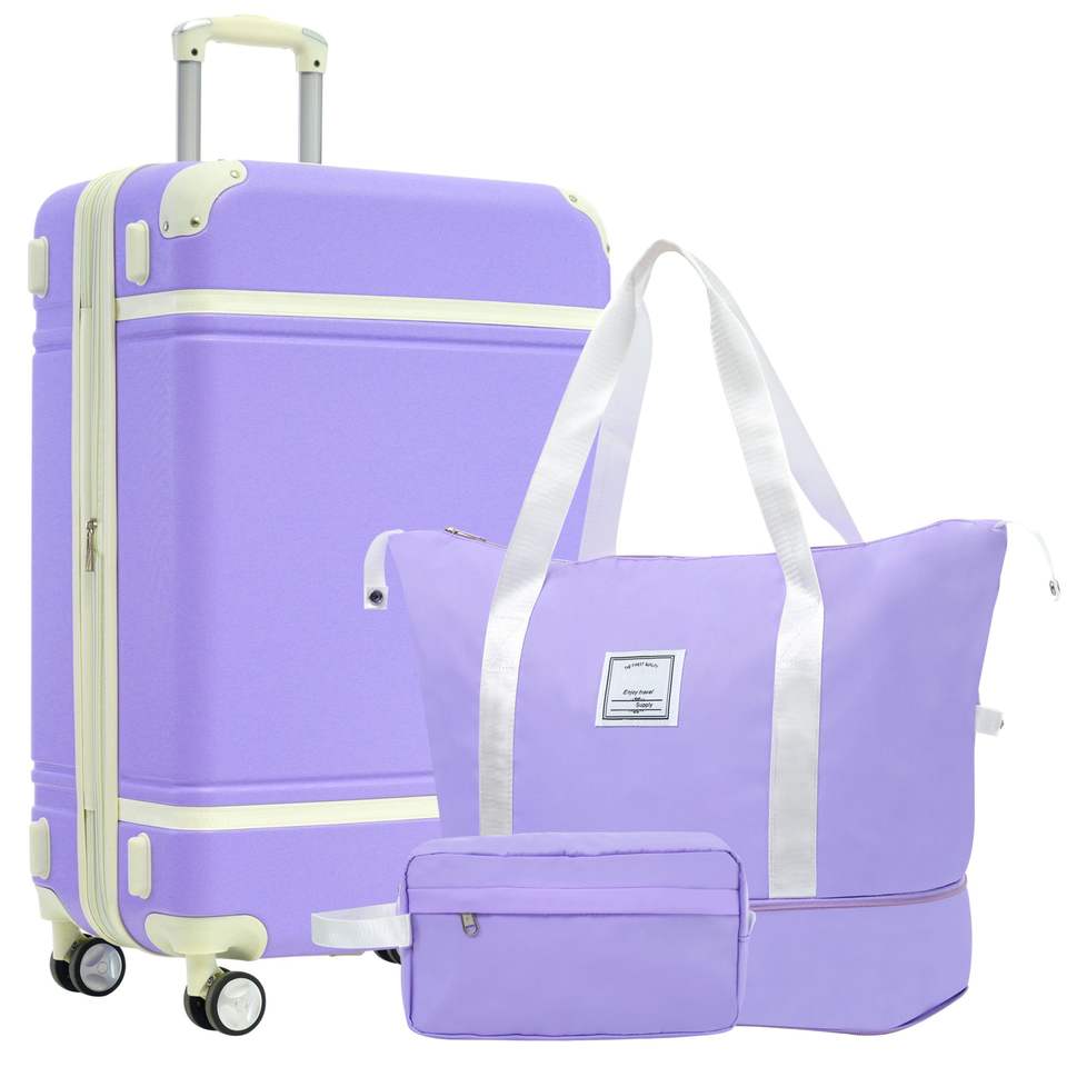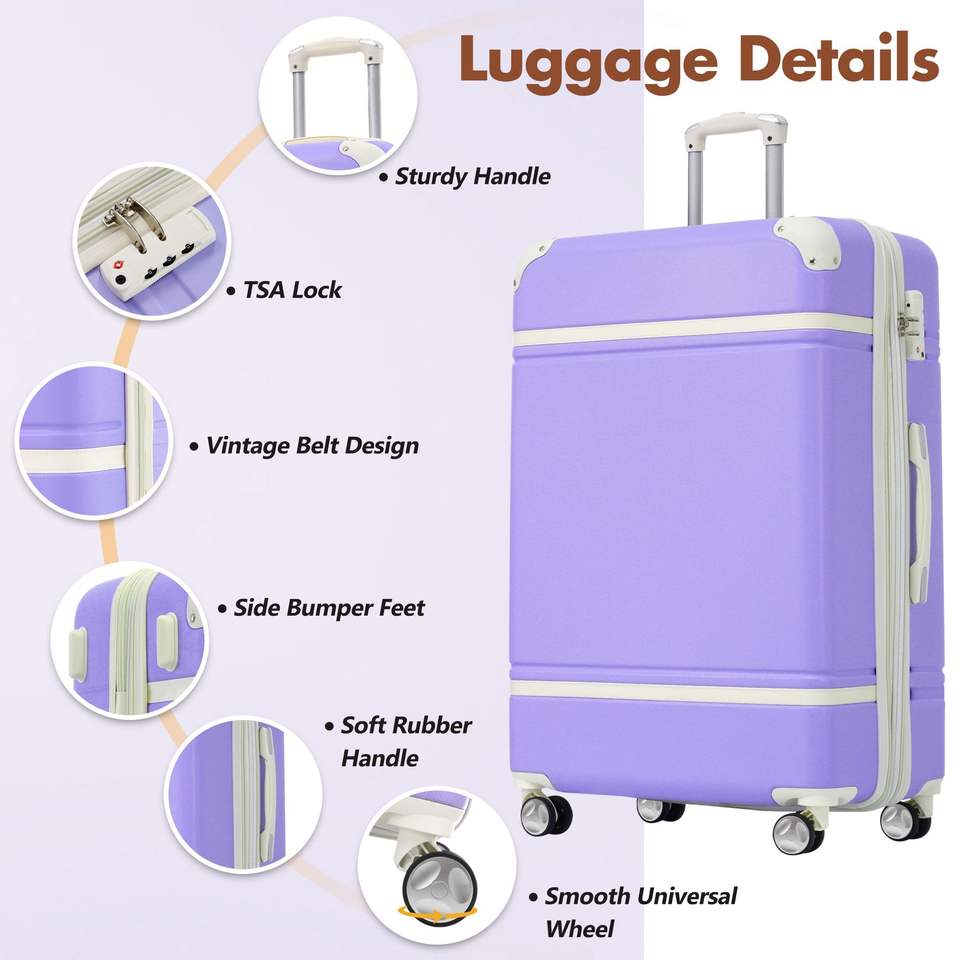 Single Vintage 28\" Purple Luggage Set Hardshell Lightweight Suitcase with Double Spinner Wheels TSA Lock Double Spinner Wheels
