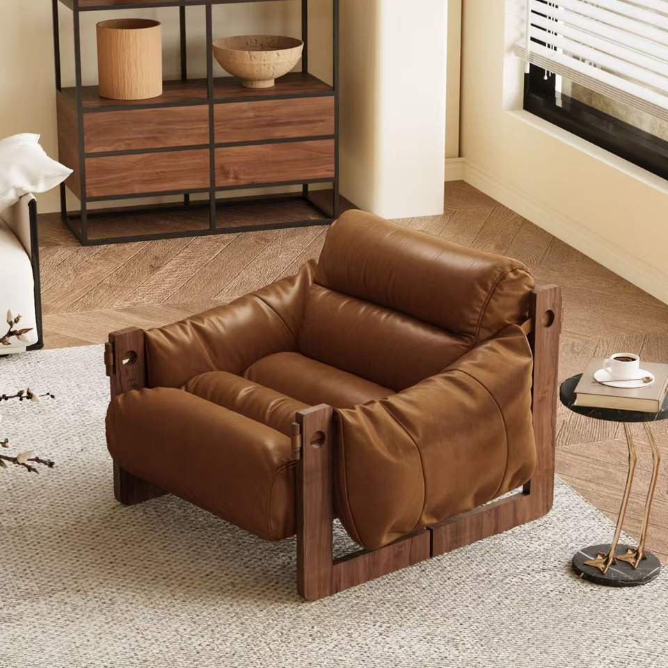 Material:Oil wax leather + wooden legs
