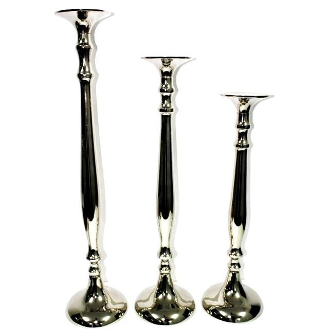 Single tall silver candlestick holder with round base decorative metal taper candle stand for wedding dining table centerpieces