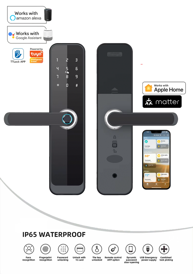 Unlock way:Phone +Fingerprint + Password + Card + Key