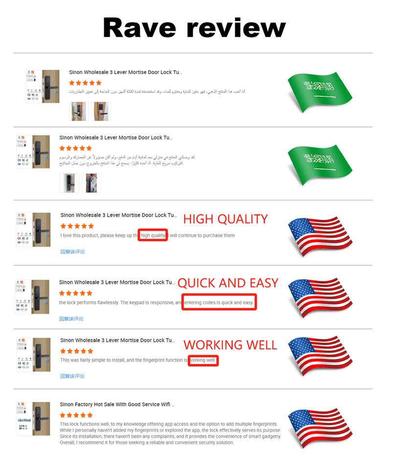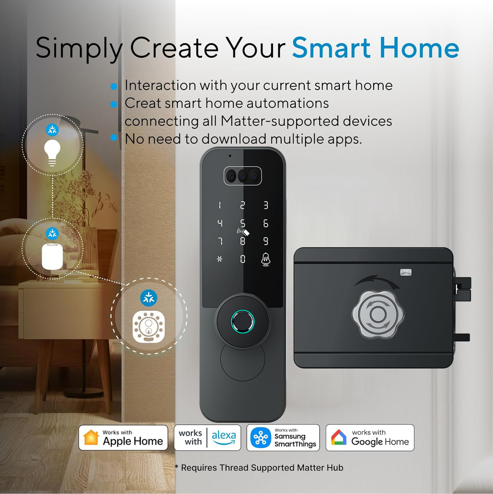 Unlock way:Apple homekit+TUYA APP+TTlock APP+Fingerprint + Password + Card + Key