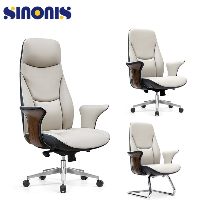 Sinonis Modern Multi Option Luxury Leather Chrome Ergonomic Swivel Executive Office Chair