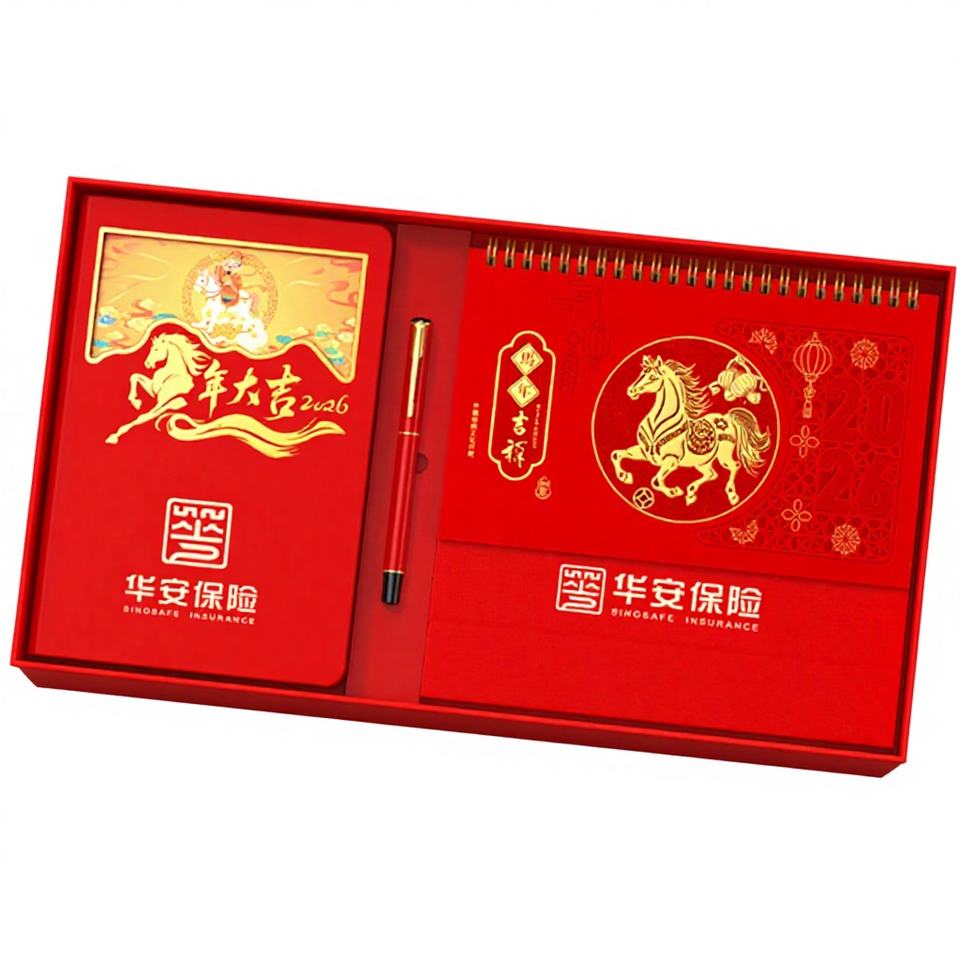 Sinosafe Insurance 2026 Horse Year Chinese New Year Gift Set Customized Business Promotion Office Paper Embossing Personalized