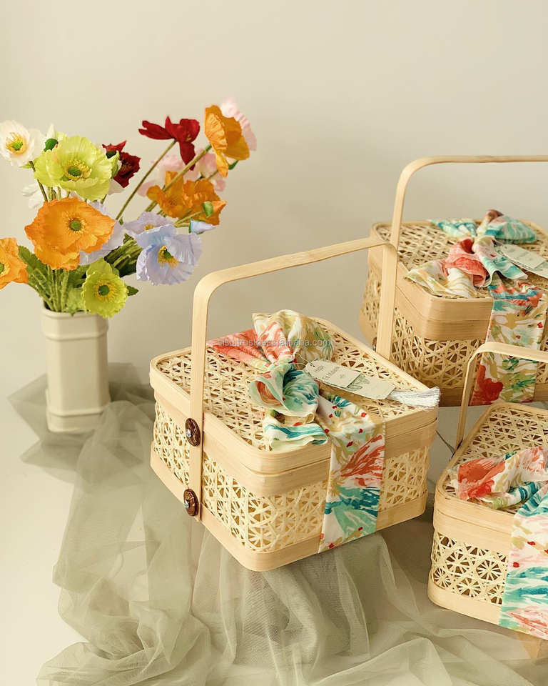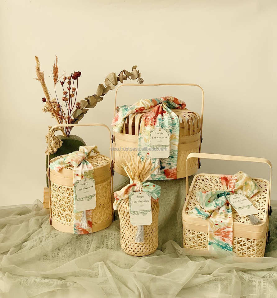 Sisu Handicraft Custom Handmade Natural Green Red Bamboo Eco-Friendly Food-Safe Handle Multi-Purpose Storage Basket