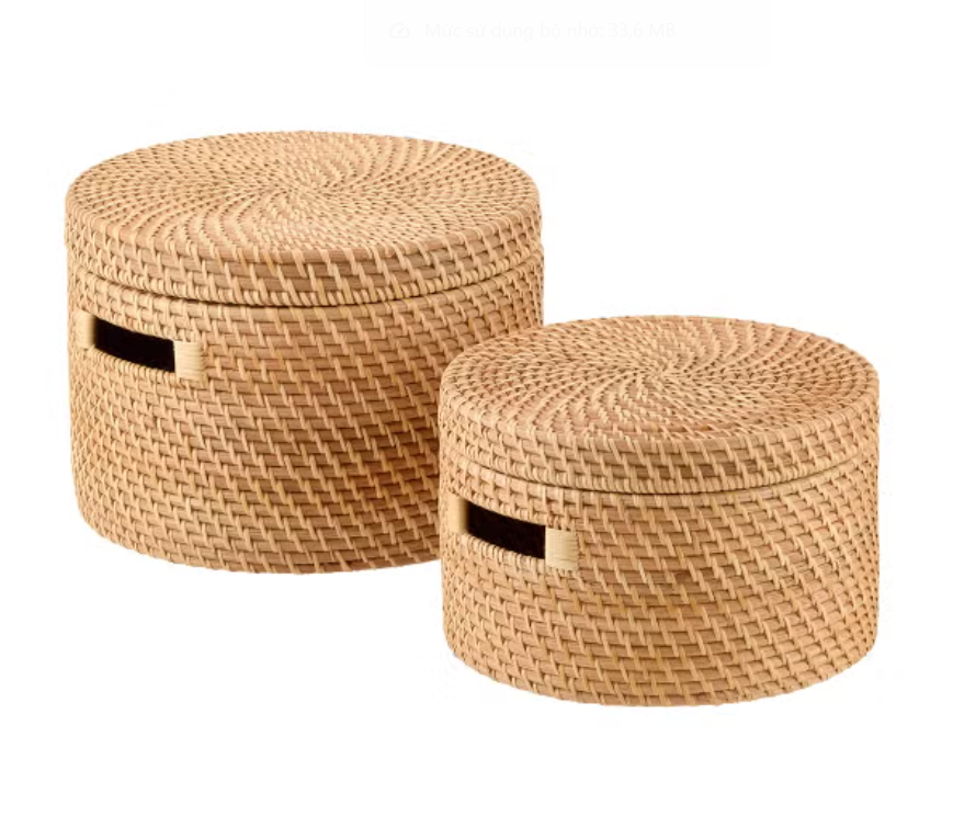 Sisu Handicraft Set 2 Natural Rattan Eco-Friendly Simple Flexible Design Food Storage Baskets Handle Circle Shape Multi-Purpose