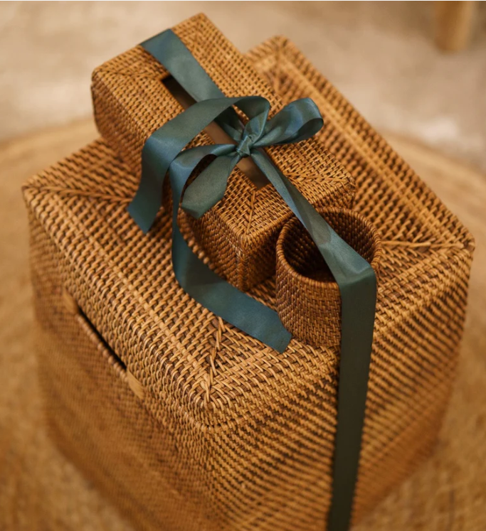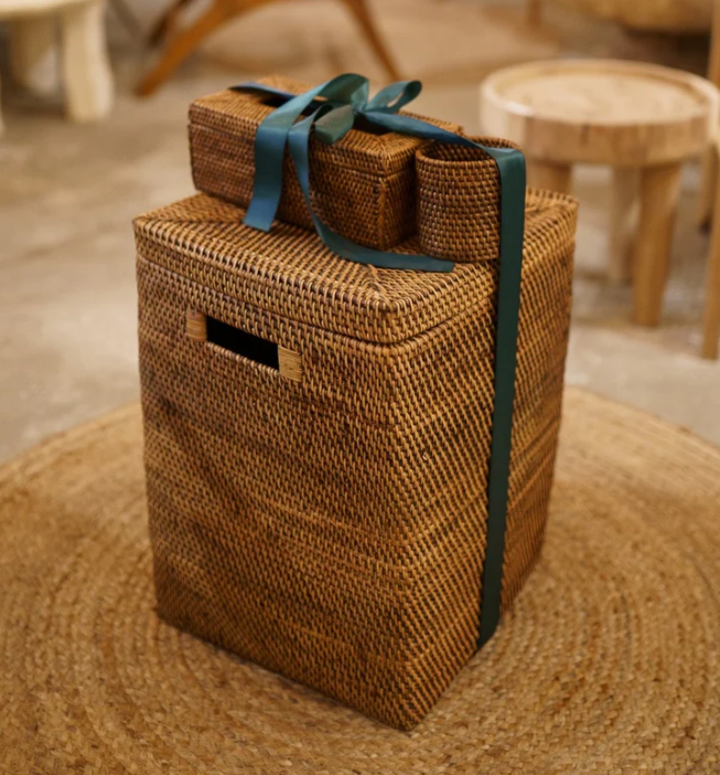 Sisu Handicraft Set 3 Brown Rattan Eco-Friendly Simple Flexible Design Food Storage Baskets Handle Circle Shape Multi-Purpose