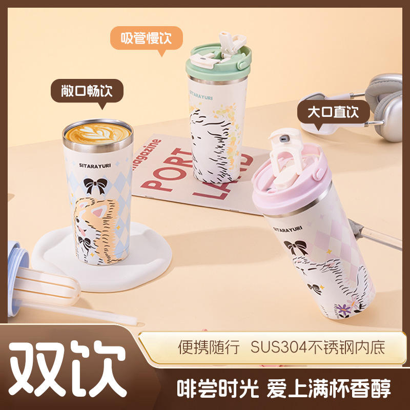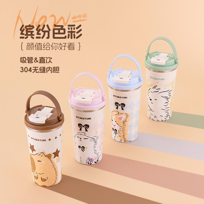Sitarayuri Stainless Steel Tumbler 560ml Insulated Coffee Mug With Straw Portable Travel Cup