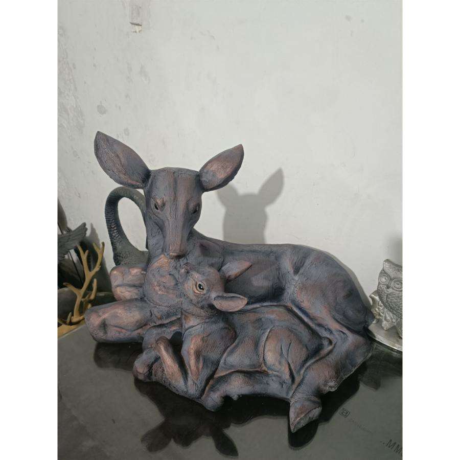 Sitting Bronze Dow With Baby Fawn Sculpture For Farmhouse Garden Supplies Decorative Antique Statue Wholesale Price