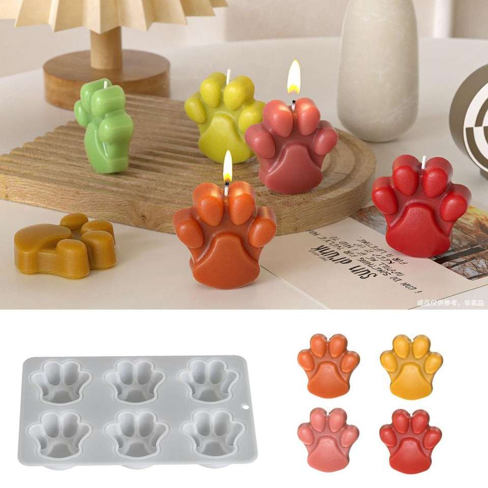 Six Dog Paw Aromatherapy Candle Cake Cheese Chocolate Fondant Candle Silicone Mold