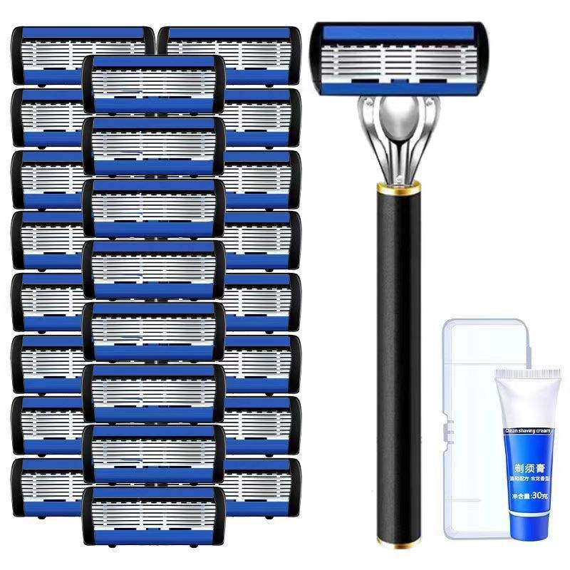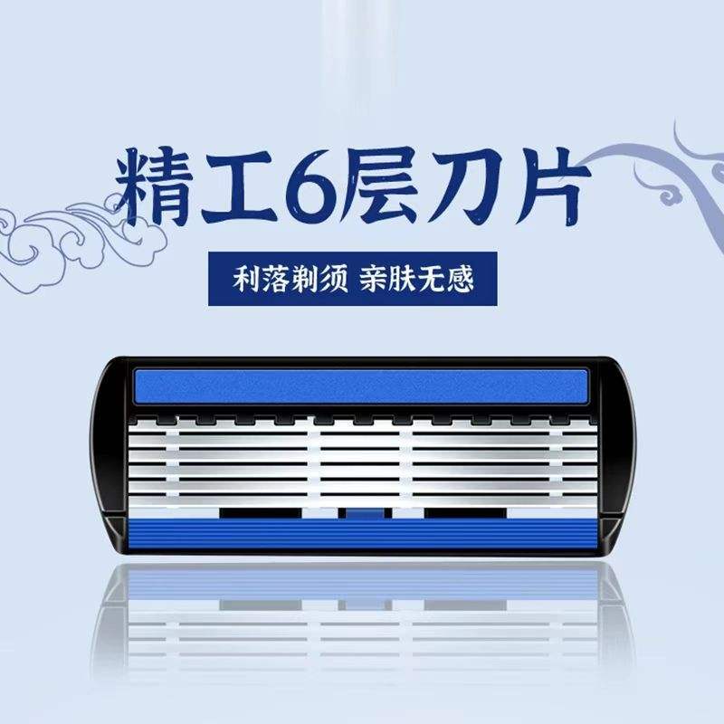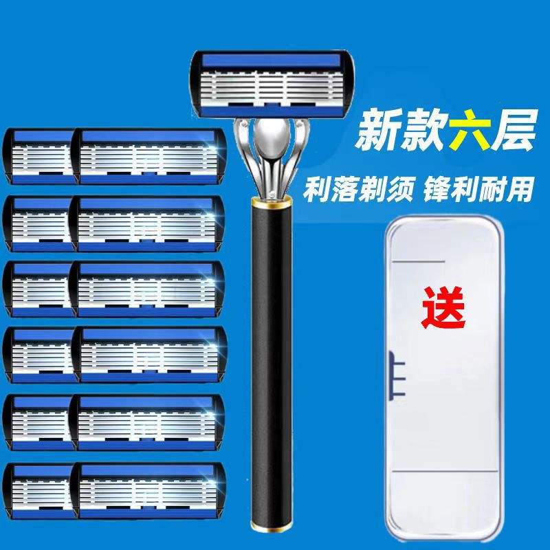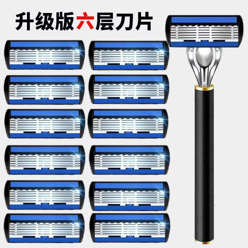Six Layer Manual Razor For Men Stainless Steel Blade Face Shaving Handle Universal Razor Head