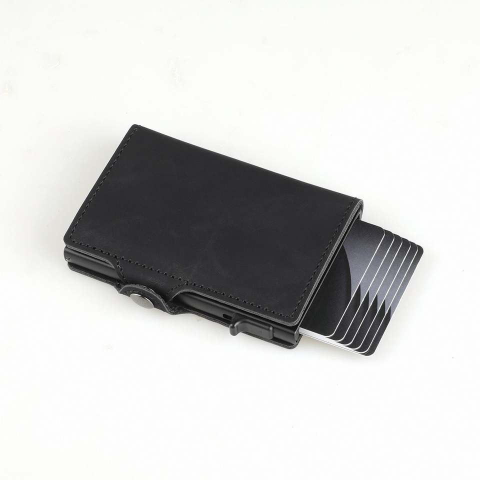Siy193 Customized Logo Leather Credit Rfid Wallet Pop up Business Id Aluminum Name Card Binder Holder