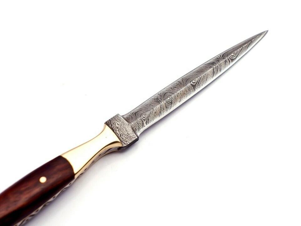 Sizzco Handmade Damascus Steel Fixed Blade Multi Knife Industrial Use Beautiful Hunting Camping Skinner Rose Wood Brass Clip