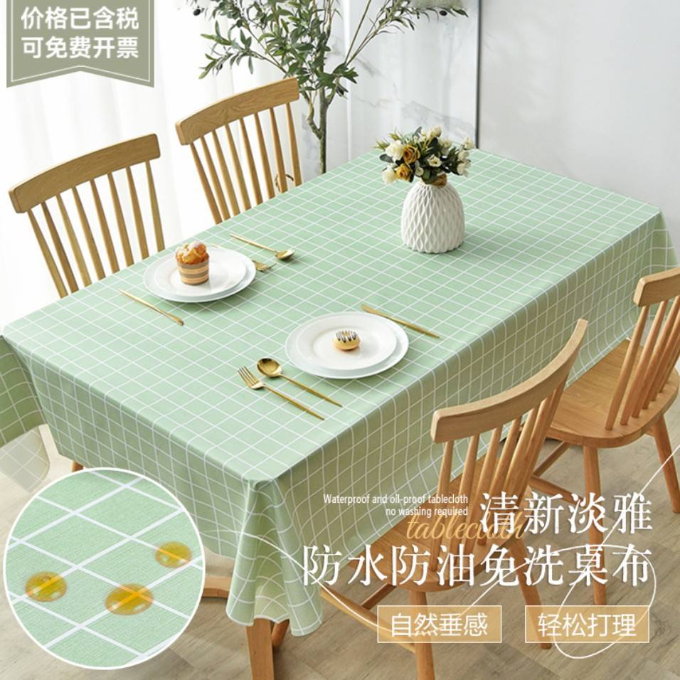 SkSolid Color Checkered Pvc Tablecloth Rectangle Home Use Oil Proof Heat Resistant Washable Machine Washable
