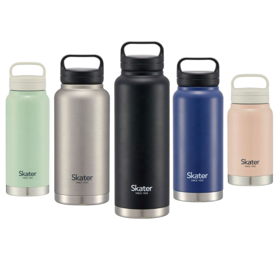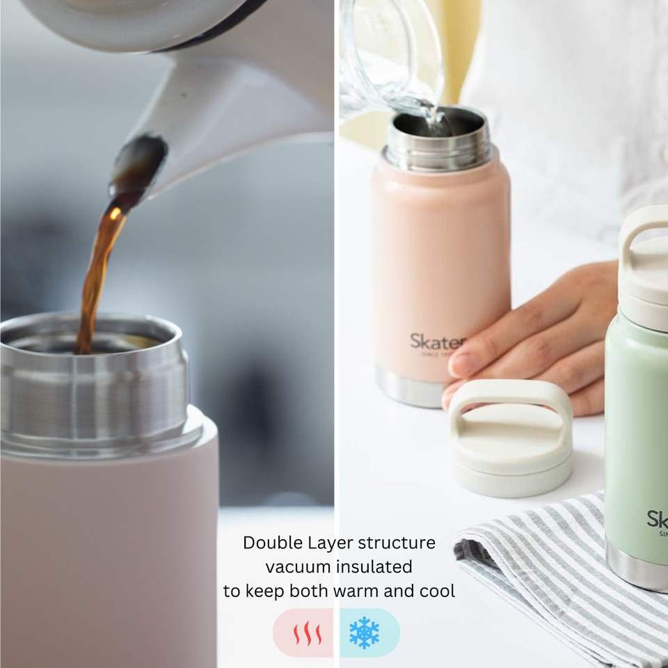 Skater Double-Wall Stainless Steel Flask Wide Mouth Screw Lid Handle Vacuum Insulated Convenient Travel Keeps Beverages Cool Hot