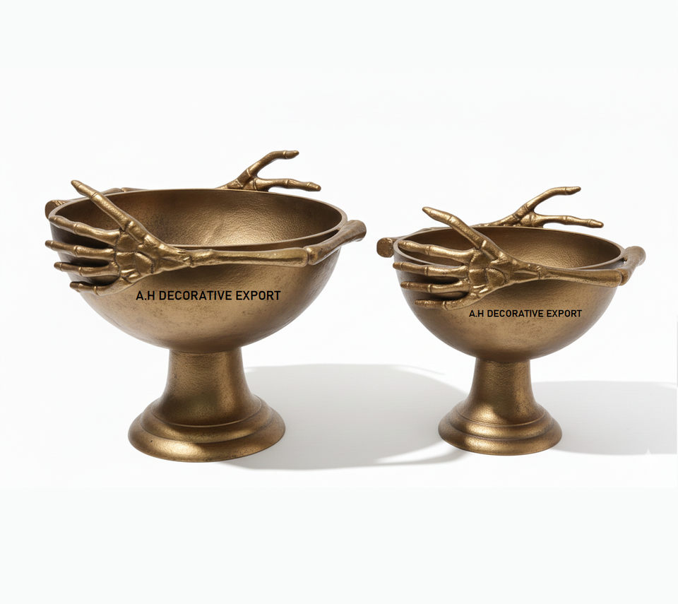 Skeleton Hand Antique Gold Modern Aluminum Eco-Friendly Wedding Fruit Bowl Pedestal Dish Centrepiece Luxury Decor Candy Bowl