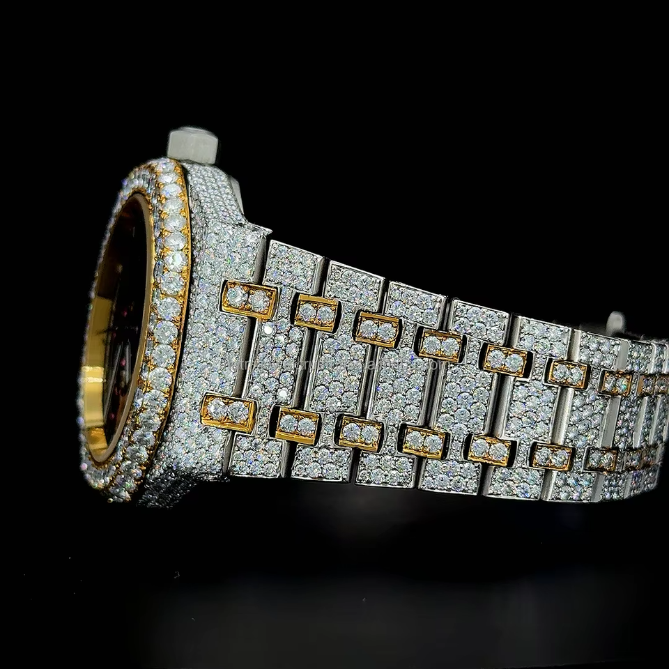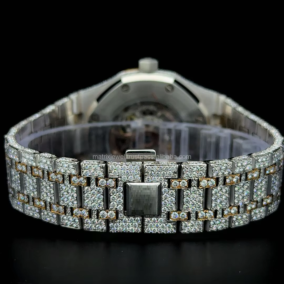 Skeleton Model VVS 1 D color Moissanite Watch Full Iced out Moissanite Diamond Watch Two tone hip hop Trending Quartz watch 2026