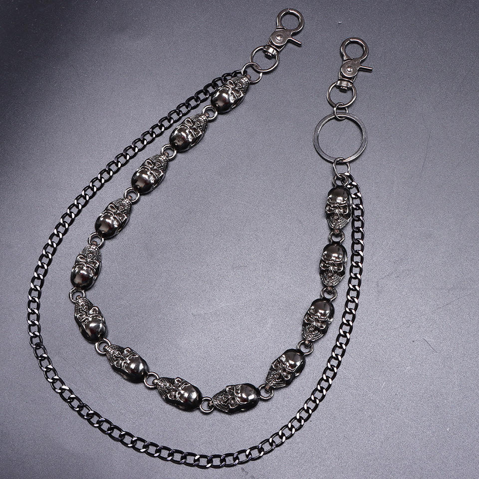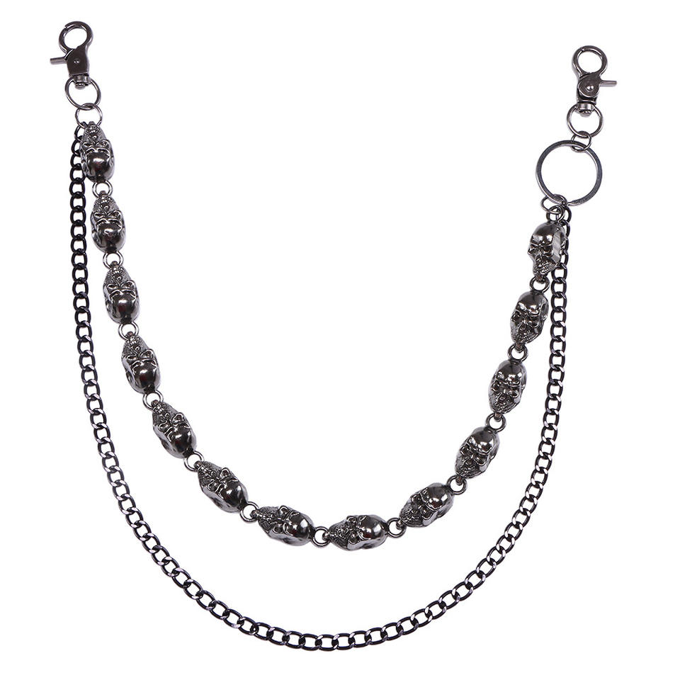Skeleton Pattern Double Layer Hip Hop Waist Chain Zinc Alloy Denim Accessory For Daily Wear
