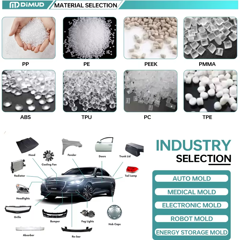 Product material:PP,PC,PS,PA46,POM,PE,PU,PVC,ABS,PMMA etc