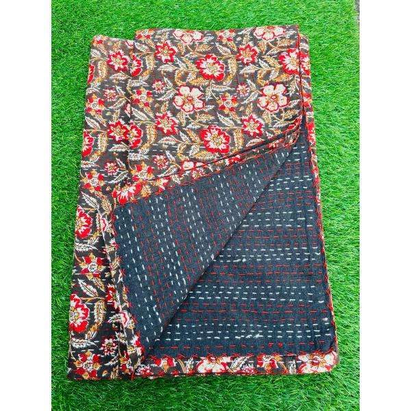 Skillfully Crafted Cotton Kantha Bed Cover Showcasing Traditional Printing And Relaxed Quilted Finish For Timeless Comfort