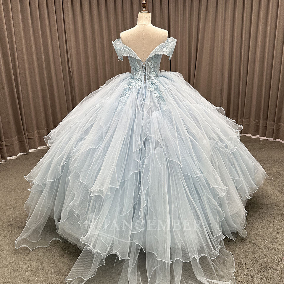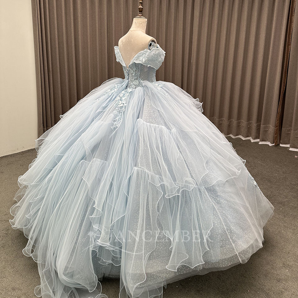 Skly Blue Candy Color Ball Gown Prom Quinceanera Party Dress Sweetheart Beaded 3D Flowers Chapel Train LSMC53